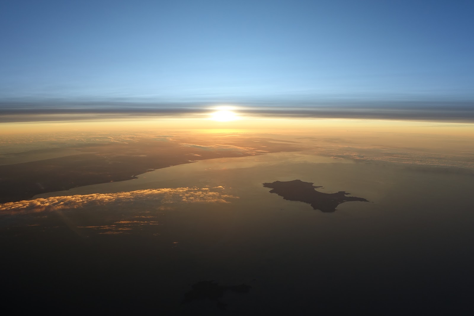 The setting Sun escapes between cloud layers shortly before the approach and landing at Porto inbound from Zurich in Airbus A319 CS-TTQ.