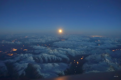 An amazing moonrise at flight level 280 over the Alps while flying from Lisbon to Milan Malpensa in Airbus A320 CS-TNR. By now we have briefed and are ready for the CAT III B no DH ILS approach to Milan's runway 35L. Touchdown RVR is at 450m so, if required, reversion to a CAT II approach is still an option. It's that time of year...