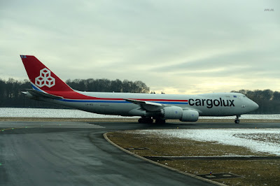 A CargoLux Boeing 747-8 preparing for takeoff from Luxembourg's runway 24. We were next in line for departure in Airbus A319 CS-TTE. Taking off behind such a large and heavy aircraft demands special attention to wake turbulence and no less than two minutes are required between its departure and our own.