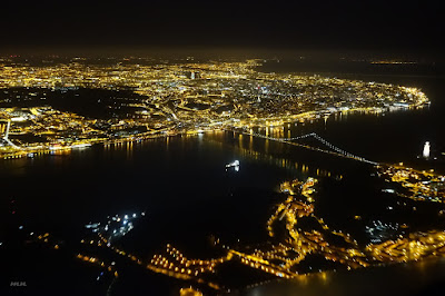 The night approach to Lisbon's runway 03 is known among pilots to be one of the most beautiful in Europe with the Tejo river and it's "25 de Abril" suspension bridge as key elements to this amazing view. This "pic from the office" was shot from Airbus A320 CS-TNN's cockpit jumpseat upon arrival from Rome.